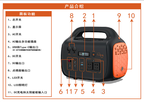 - הוא תומך בטעינה ופריקה בו זמנית. יש לו מגוון רחב של שימושים. זה יכול לשמש כספק UPS מקוון או כספק כוח חיצוני לגיבוי חירום. זה יכול לפגוש ציוד רפואי מקורה, מדפסות קטנות, מנורות שונות, מחממי מיכל דגים קטנים, מחברות וקמפינג בחוץ. הוא משמש כאשר נדרשים תאורה ואספקת חשמל באירועים כגון צילום, חירום שריפה, חילוץ חירום וסיוע באסון.