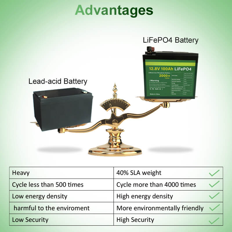 2. משקל קל יותר: כ -40% ממשקל סוללת חומצת עופרת דומה, קלה להובלה והתקנה. זוהי בחירה אידיאלית עבור ספק כוח קמפינג חיצוני והתקנה פנימית פשוטה.