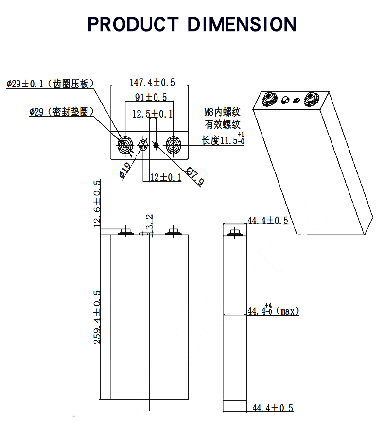 ממד (אנא עיין בשרטוט) | 44.4*147.4*272 מ"מ |