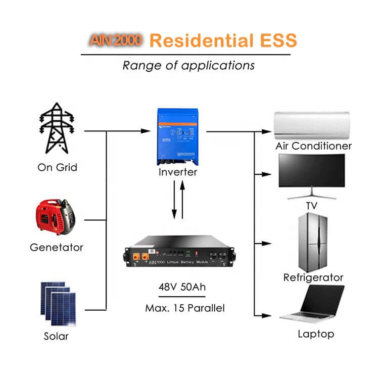 1. סוללת מערכת סולארית 48vAIN2000 פותחה עם ביצועים גבוהים LFP תא 3.2V 50Ah ו- EV סטנדרטי מבנה כדי להבטיח בטיחות וחיי שירות יוצאים מן הכלל.